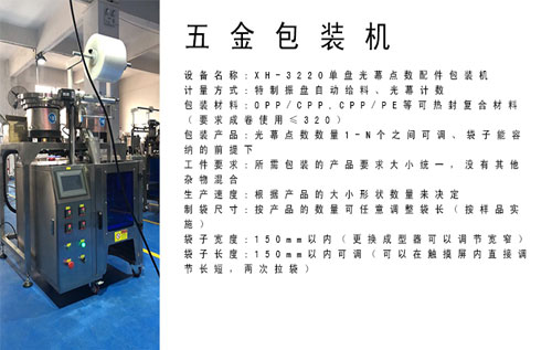 應(yīng)用于各種五金螺絲包裝,電子零件包裝,電子元器件包裝及食品包裝。螺絲包裝機可單款產(chǎn)品包裝,可多款產(chǎn)品混合包裝,包裝數(shù)量包裝袋長度可自由調(diào)節(jié),自動送料、自動計數(shù)、自動封口、自動包裝.五金件自動包裝機還應(yīng)用于各種顆粒狀食品等各種行業(yè)實現(xiàn)自動化計數(shù)包裝,檢測,打標等,為適應(yīng)于不同工件的上料需求設(shè)計制作了不同型號.為專業(yè)化,標準化的生產(chǎn)進一步提高了產(chǎn)品的穩(wěn)定性,一致性,降低了成本,為出優(yōu)質(zhì)產(chǎn)品提供了可靠的保證。