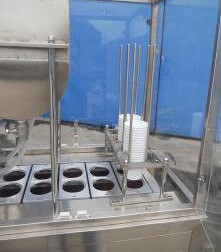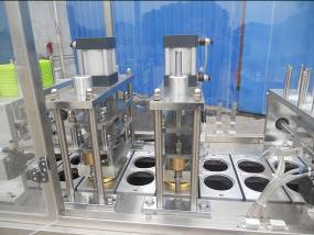 杯盒灌裝封口機(jī)從送杯、充填、液位控制、放蓋、兩次封口、推杯、輸送為全自動作業(yè)。