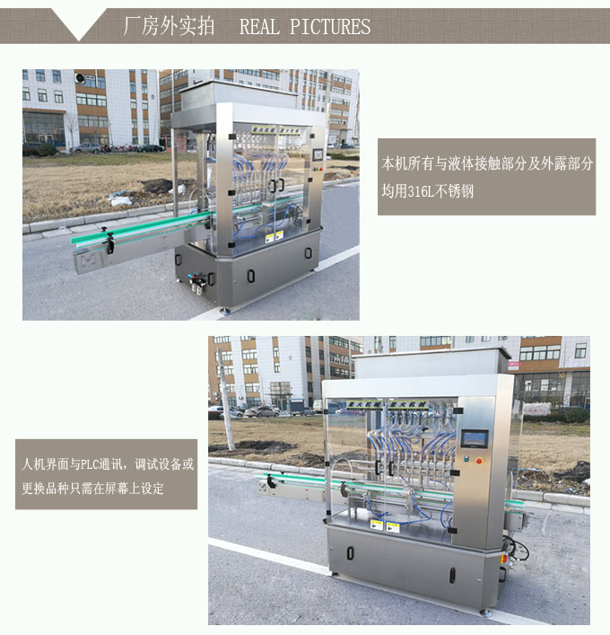 適用于食品飲料、醫(yī)藥、化工、農(nóng)藥等行業(yè)中各種流動液體的灌裝。如果汁、果酸飲料、調(diào)味香油、酒醬油、醋等。