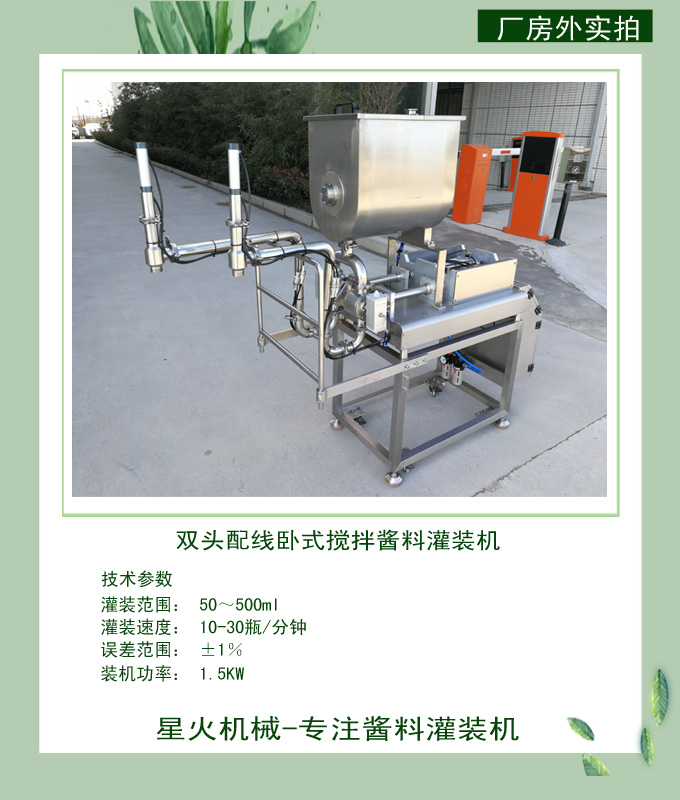 您當(dāng)前位置為:首頁醬料灌裝機系列 >> 雙頭配線臥式攪拌醬料灌裝機