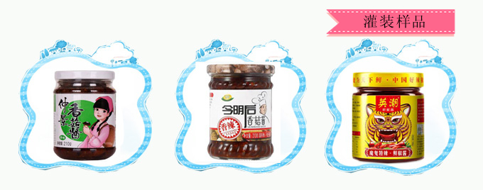 5、主要針對食品行業(yè)的醬類分裝設(shè)計生產(chǎn),特別適用于調(diào)味品中帶顆粒并且濃度較大的辣椒醬、豆瓣醬、花生醬、芝麻醬、果醬、牛油火鍋底料、紅油火鍋底料等物質(zhì)的粘稠醬類的灌裝