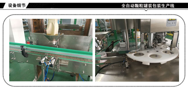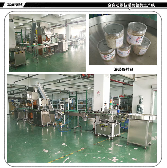 全自動顆粒罐裝包裝生產(chǎn)線-堅(jiān)果灌裝封口貼標(biāo)生產(chǎn)線根據(jù)不同用戶的瓶裝,聽裝,桶裝,標(biāo)準(zhǔn)瓶,異形瓶及實(shí)際產(chǎn)品特性和用戶要求實(shí)現(xiàn)自動化;該設(shè)備能夠?qū)崿F(xiàn)人工上瓶、備料后,自動理瓶、稱重、灌裝、旋蓋、封口、貼標(biāo)、收罐等全過程的自動運(yùn)行。減少勞動力,節(jié)約成品,實(shí)現(xiàn)無人化包裝生產(chǎn)
