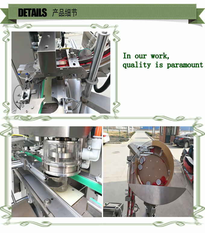 自動真空旋蓋機(jī)機(jī)是我司多名具有豐富經(jīng)驗(yàn)的高級工程師研發(fā),集自動理蓋、上蓋、自動抽真空旋蓋于一體,手用真空泵抽真空的方式,可獲得很高的真空度。具有無瓶不送蓋,缺蓋自動報(bào)警功能,自動化程度高,主要?dú)鈩蛹半娖髟捎脟H知名品牌,性能穩(wěn)定可靠,廣泛適用于食品罐頭、飲料、調(diào)味品、保健品等行業(yè)中玻璃瓶、馬口鐵蓋的真空旋蓋。